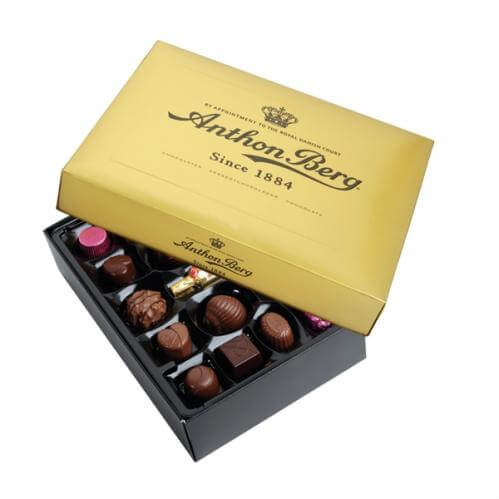 Anthon Bergs Guldask 200g med ett urval av härliga chokladpraliner. Ge bort som gå bort present eller till någon du tycker om. Perfekt även när du vill unna dig själv något riktigt gott. Chokladen innehåller inte gluten.