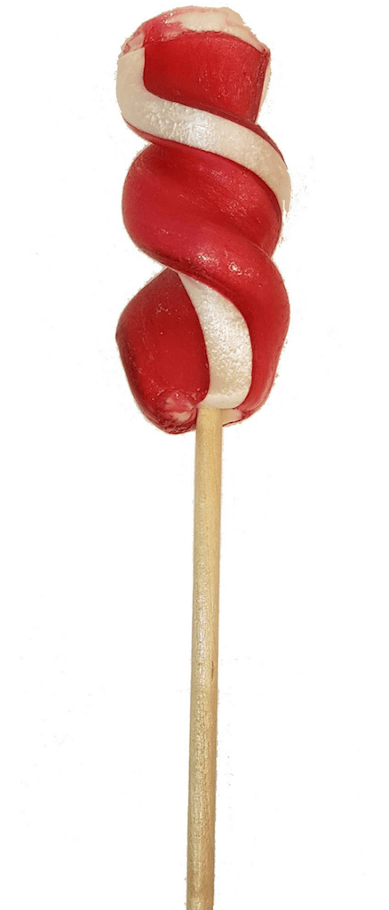 Frisk hallonsmak. 100% Skånskt hantverk enligt ett över 100 år gammalt recept. Kokning i öppet kopparkärl över gaslåga, sedan sker allt för hand från klippning av karamelldegen med sax tills klubbans påse lämnar produktionen. Klubborna är styckinslagna.